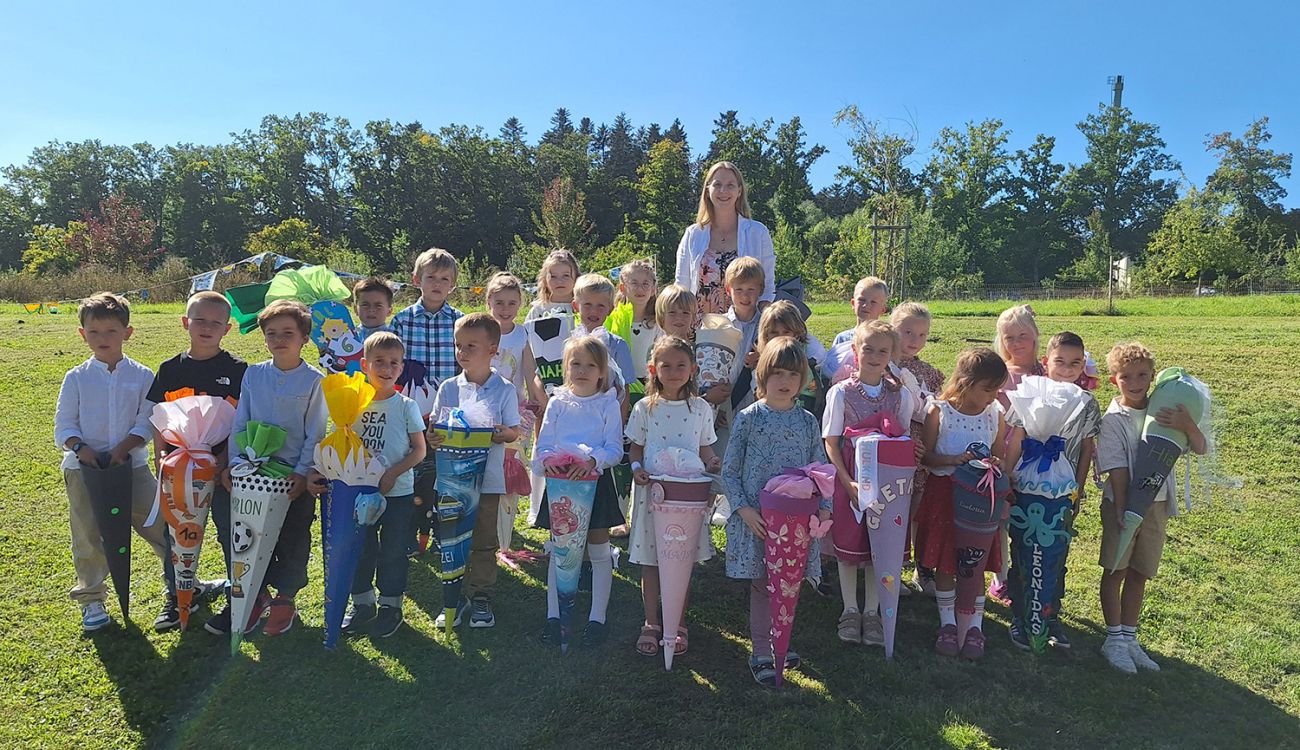 Dass unsere Erstklässler viele neue Freunde in der Maximilian-Kolbe-Schule finden und sich wohlfühlen in ihrer Klasse, das wünschten sich deren Klassenlehrerinnen Frau Brödel, Frau Müller und Frau Arnold genauso wie Pfarrer Timo Weber, der die Kinder beim Gottesdienst feierlich segnete, bevor sie schließlich zur ersten Schulstunde in ihr Klassenzimmer aufbrechen durften. Währenddessen ließen sich die Eltern und Verwandten Kaffee und Kuchen in unserer Mensa schmecken und genossen das schöne Wetter auf unserer Terrasse.