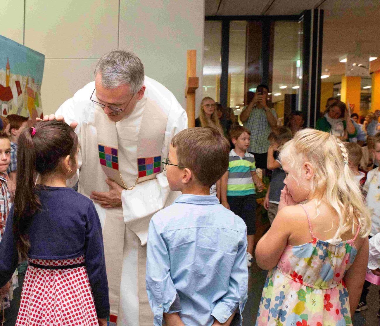 Bei schönstem Spätsommerwetter wurden die neuen 74 Erstklässler mit einem feierlichen Einschulungsfest an der Maximilian-Kolbe-Schule empfangen. Unter den stolzen Augen der Eltern, Großeltern und Verwandten hießen die Rektorin Ute Brenner, der Pfarrer Timo Weber und das Grundschul-Kollegium die frischgebackenen Schülerinnen und Schüler im Foyer willkommen.
