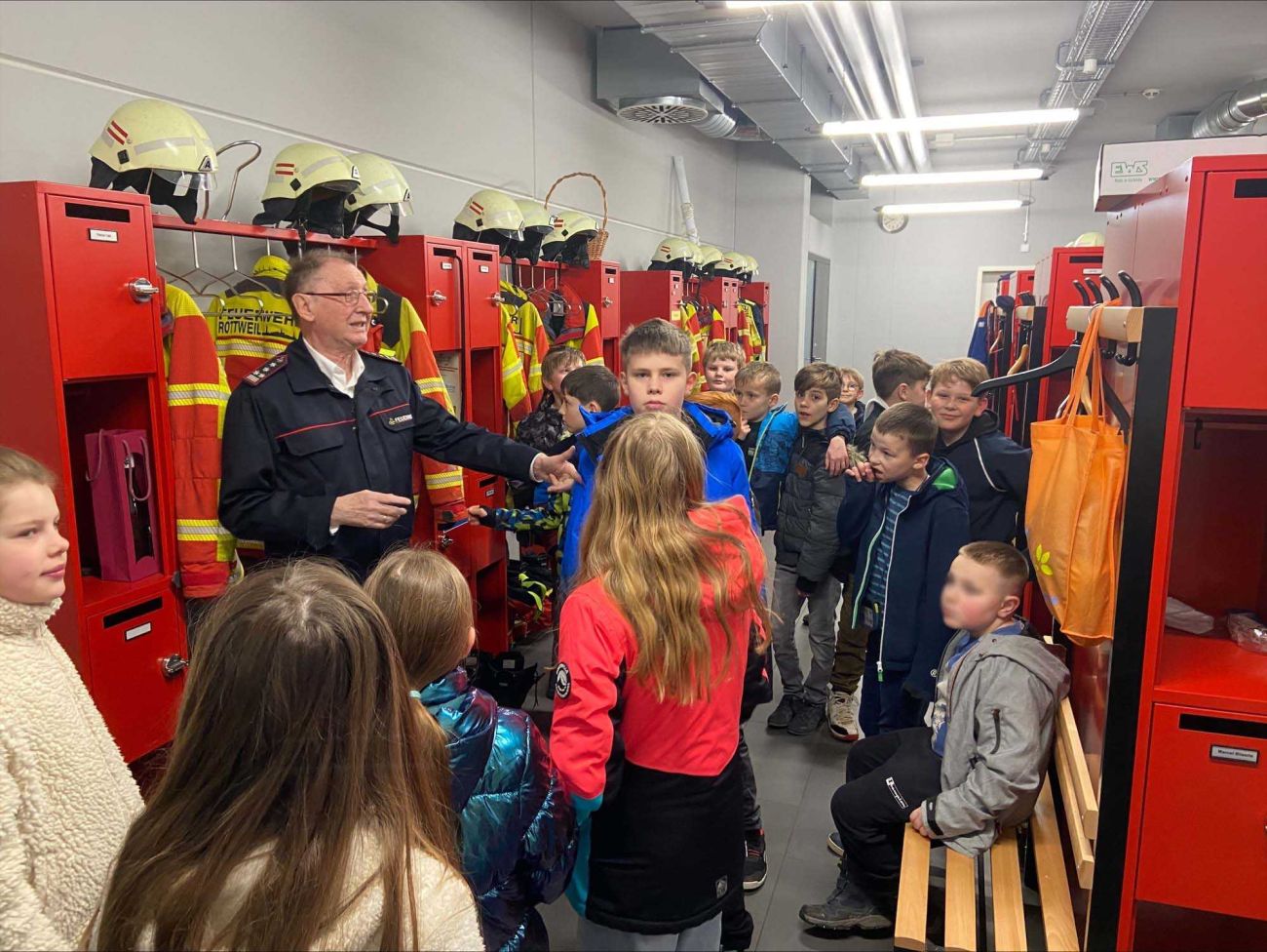 Passend zum VU-Thema FEUER statteten unsere vierten Klassen kürzlich der Rottweiler Feuerwehr einen Besuch ab. An drei Terminen nahmen sich Kommandant und Ehrenkommandant Müller Zeit für die Klassen, um ihnen alles zu zeigen und Fragen zu beantworten.