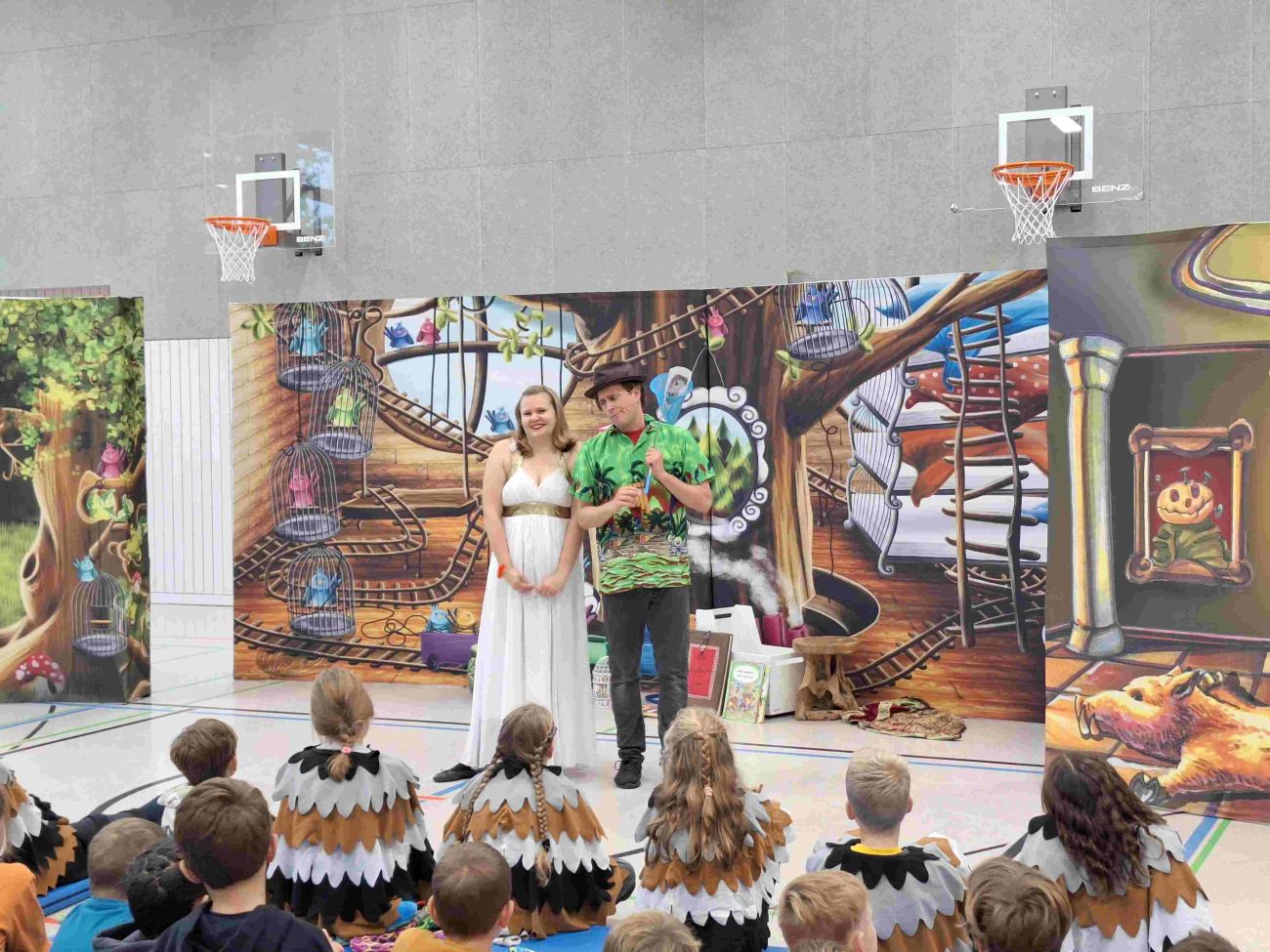 Dass Operngesang nicht langweilig und nur was für Erwachsene ist, davon konnten sich kürzlich unsere Grundschüler bei der kurzweiligen Inszenierung von Mozarts Zauberflöte in unserer Turnhalle überzeugen.