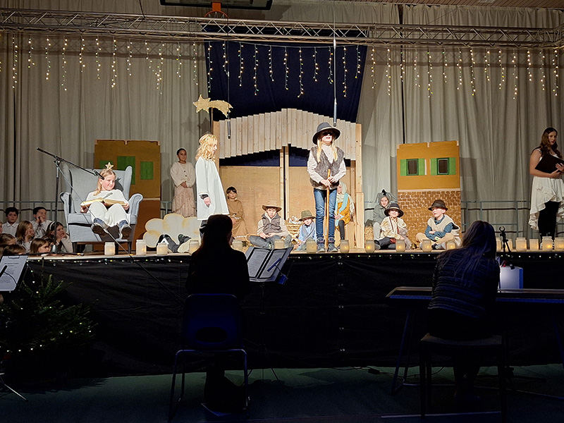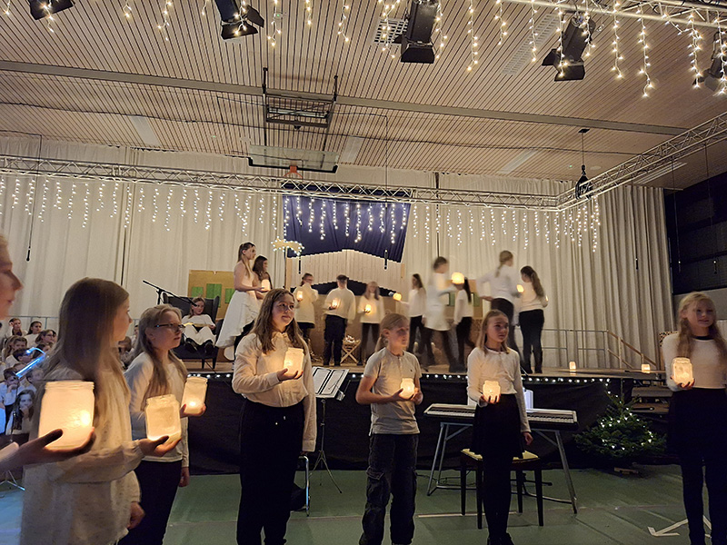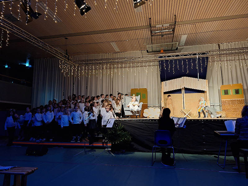 Umrahmt von wundervoller Chor- und Instrumentalmusik unseres Grundschul-und Sekundarstufenchors sowie der Gitarrengruppe führte die Klasse 3c ein schönes Krippenspiel auf, die Tanz-AG bezauberte uns mit einem stimmungsvollen Lichtertanz und weitere Gedichtbeiträge luden zum Nachdenken ein.
