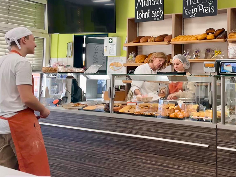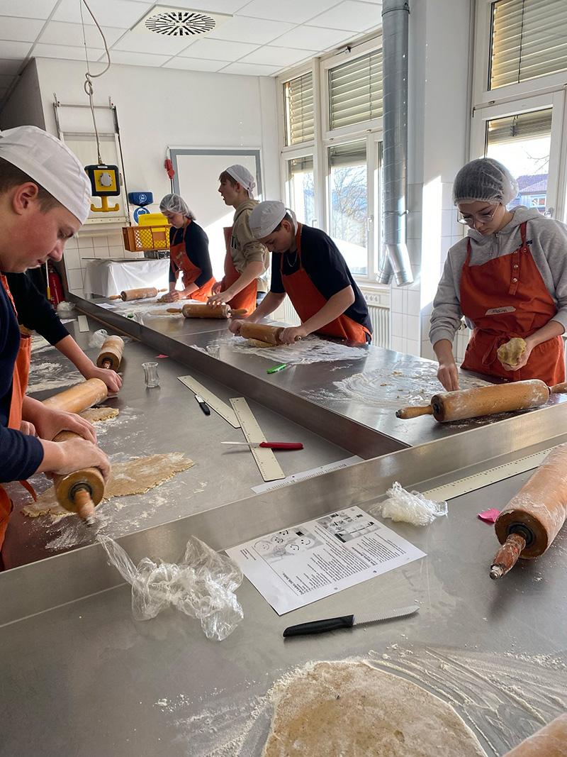 Der nächste Beruf, den die Klasse erkundete, war der Bäcker bzw. der Bäckereifachverkauf. Hier erfuhren sie viel über die Herstellung von Backwaren und die Verkaufsstrategien in einer Bäckerei. Sie durften selbst Pizza und kleine Gebäckstücke herstellen, was nicht nur lehrreich, sondern auch sehr lecker war!