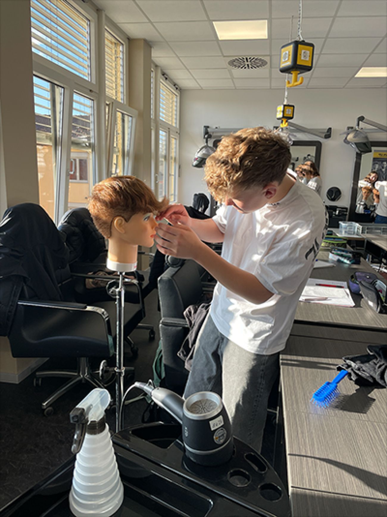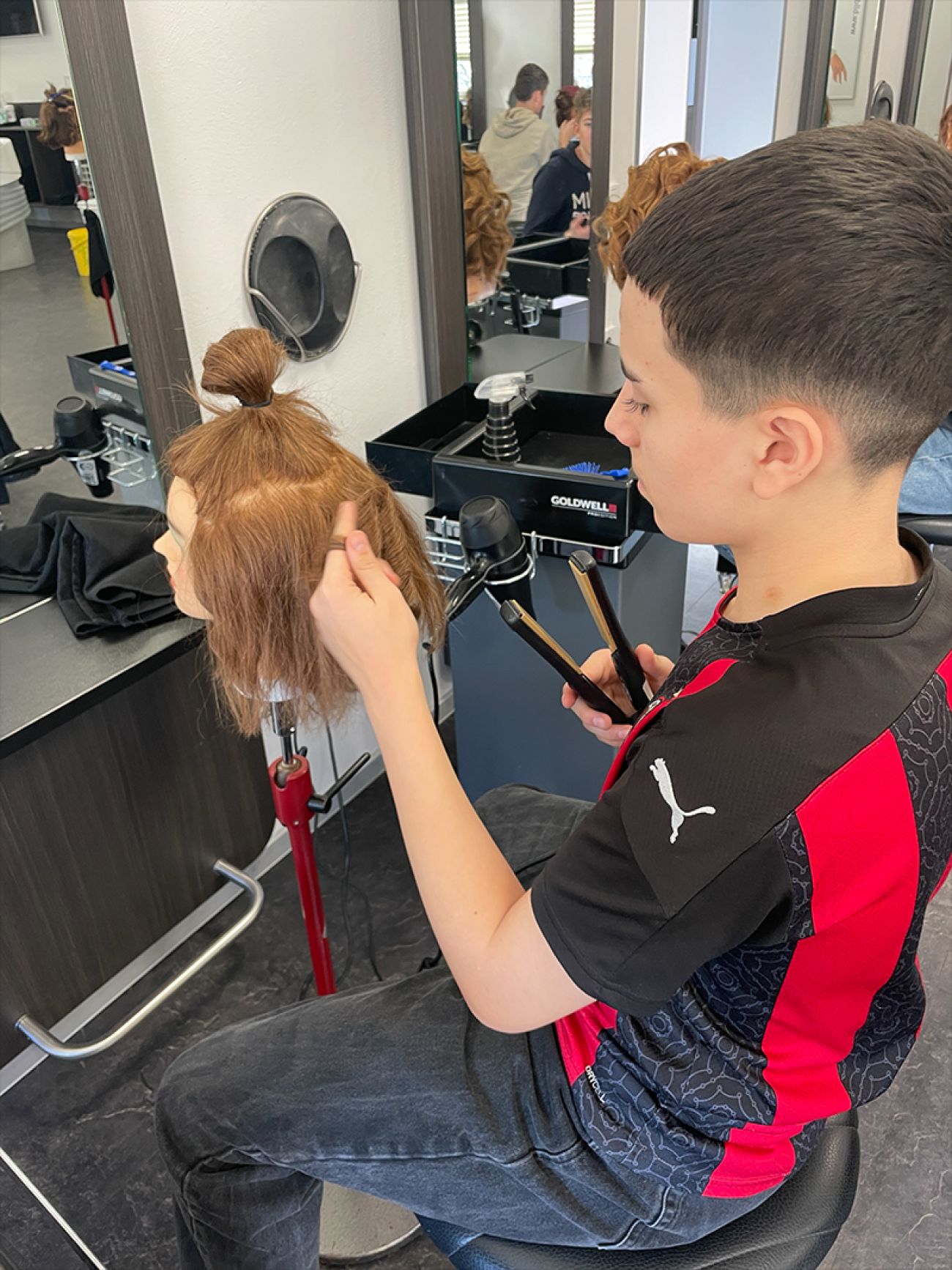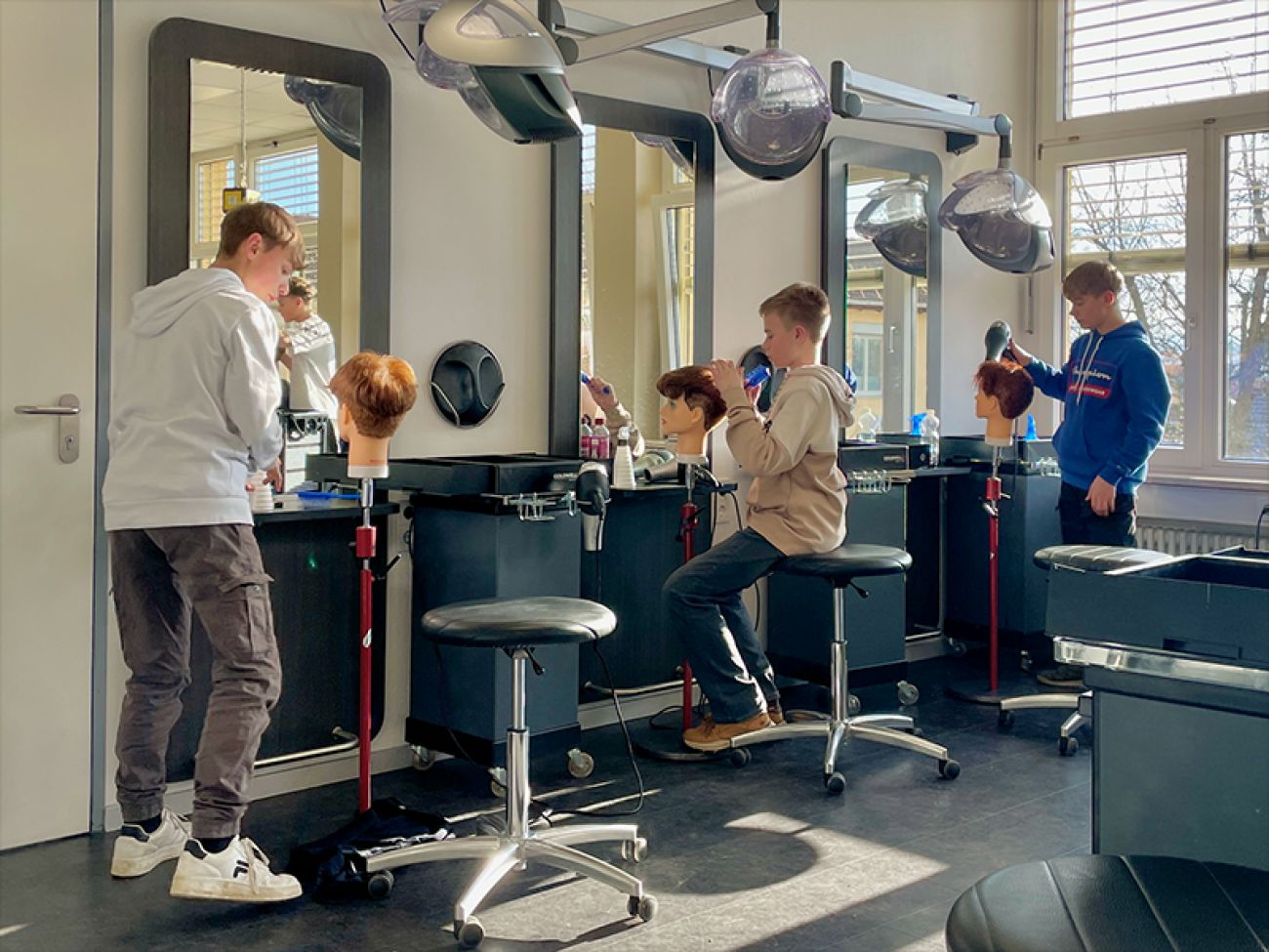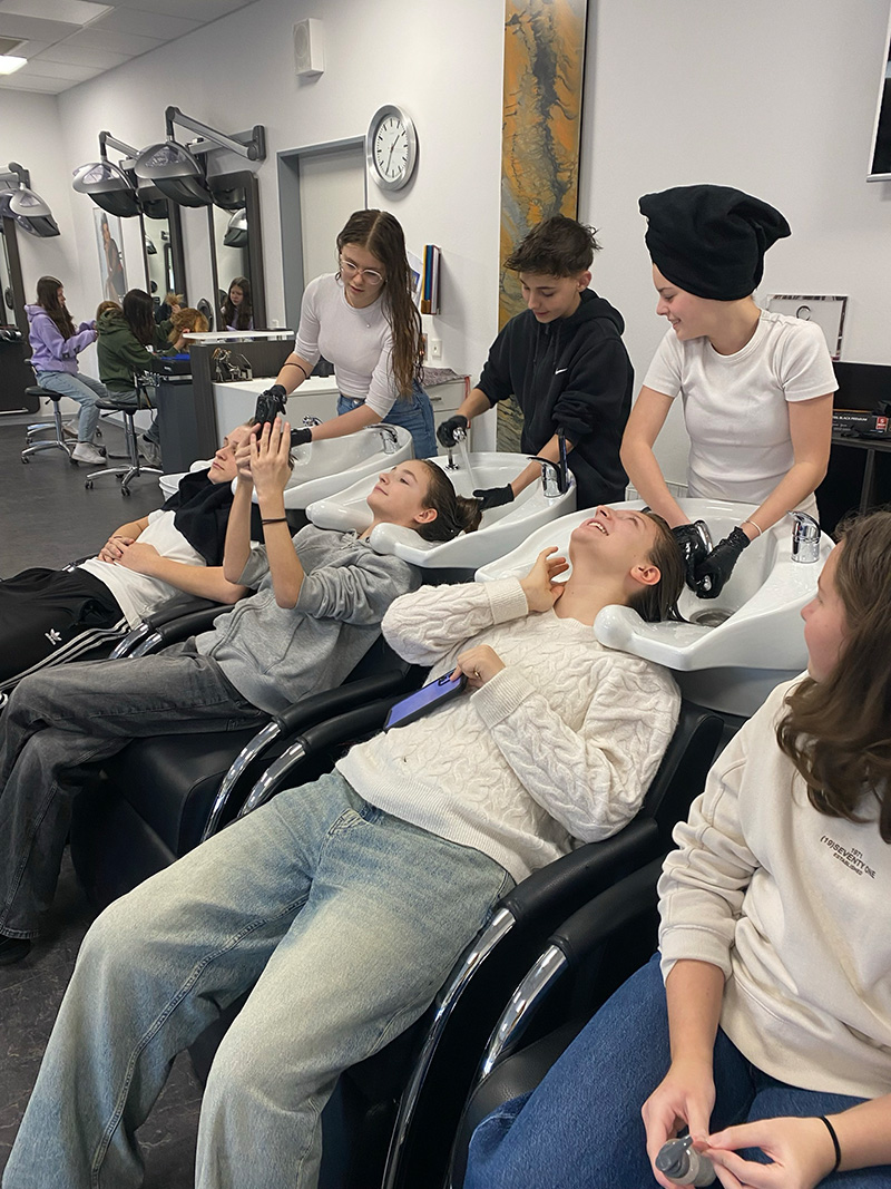 Im Anschluss folgte der Friseurberuf. Hier lernten die Jugendlichen verschiedene Techniken und Stylings kennen. Unter Anleitung einer Friseurmeisterin konnten sie selbst Hand anlegen und ihre Fähigkeiten im Umgang mit Haaren ausprobieren. Diese praktische Erfahrung war für viele eine spannende Herausforderung.