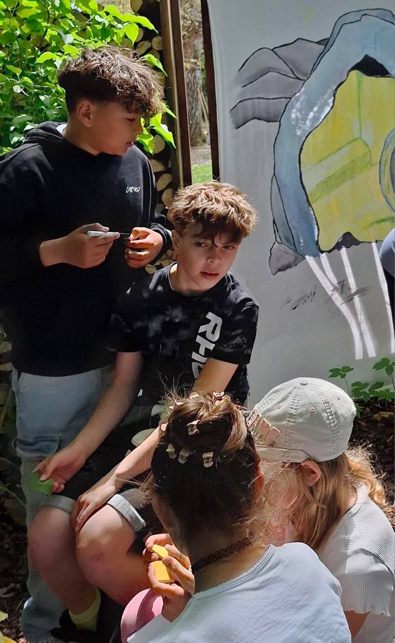 Auf einem Stationen-Rundweg hatten wir die Möglichkeit, die Ostergeschichte aus der Sicht von Jesu Freunden, Maria Magdalena und Petrus, mitzuerleben, indem wir ihre Gedanken und Gefühle per QR-Code anhören durften. Bilder von Tobias Kammerer halfen uns, die Situation zu erkennen, in der Jesus und die Freunde sich gerade befanden. An jeder Station gab es einen Impuls, den wir miteinander lasen und etwas Praktisches tun konnten. Wir waren Zweierteams und überlegten, was uns dazu einfiel. Am Ende tauschten wir uns aus und beteten gemeinsam.