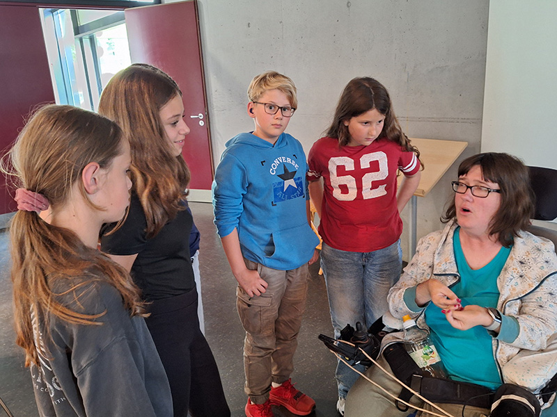 Kürzlich hatten unsere Fünftklässler ganz besonderen Besuch aus der Schweiz. Die ehemalige „Miss Handicap 2011“ Stefanie Fischer (geb. Dettling) erzählte den Mädchen und Jungen aus ihrem Leben und von ihren besonderen Erfahrungen als Botschafterin für Menschen mit Behinderung in der Schweiz.