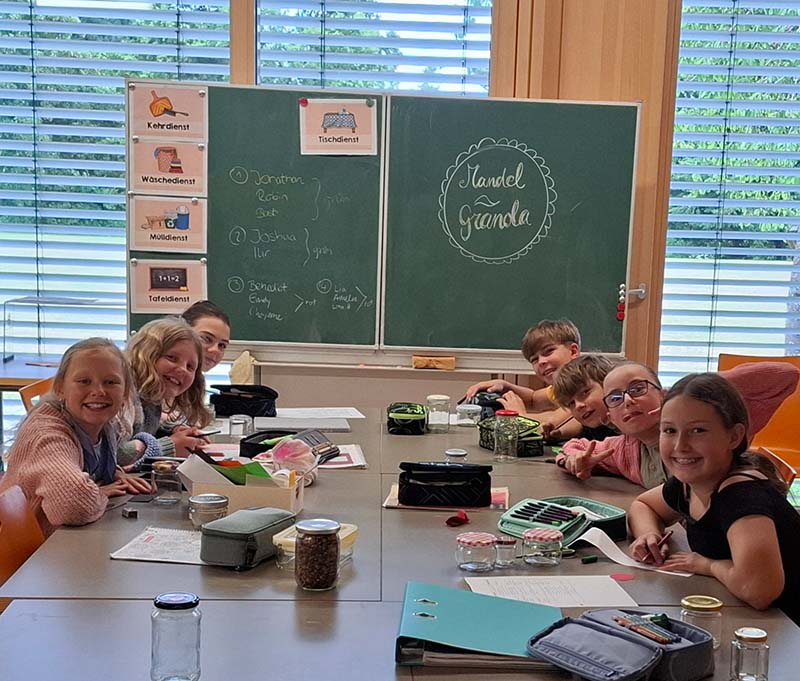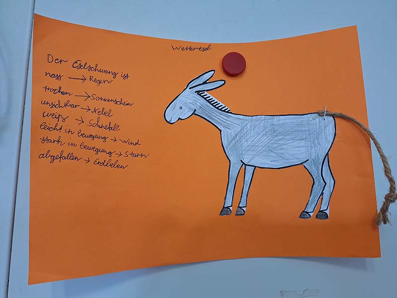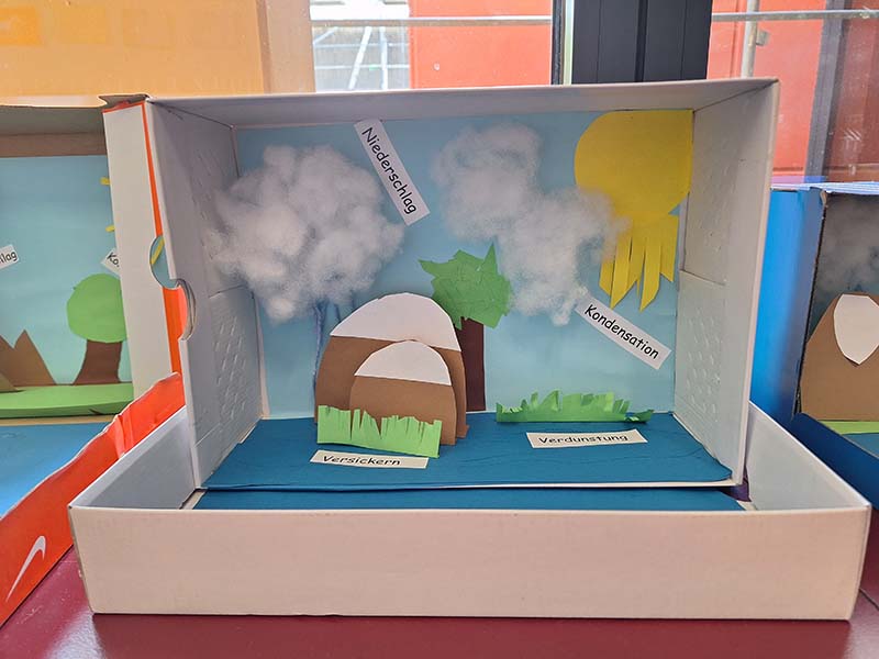 Die Drittklässler beschäftigten sich mit dem Thema "Wir und das Wetter", sie bauten einen Wetterkreislauf im Schuhkarton, bastelten Wetteresel und Regenmacher aus gebrauchten Chipsdosen und lernten viel über das Wetter und unser Klima. Sogar einen Wetterbericht bereiteten sie vor und filmten sich in unserem MaxiSpace.