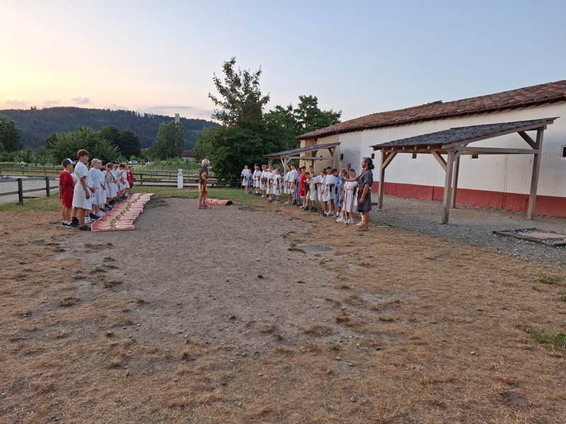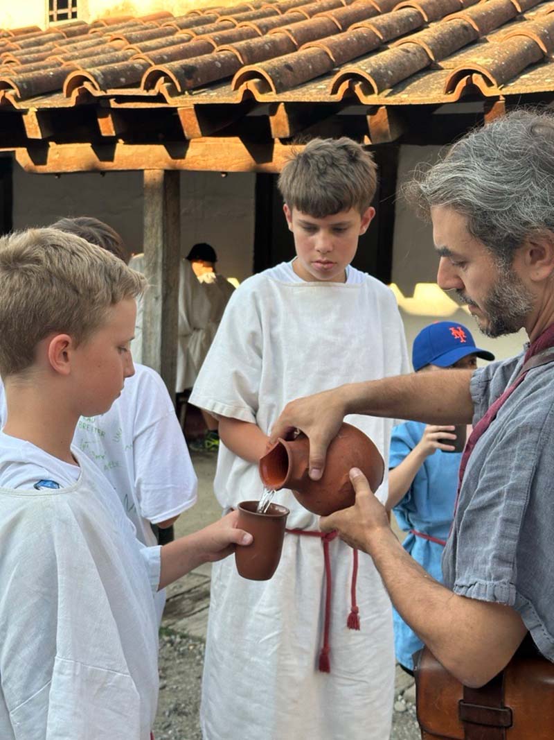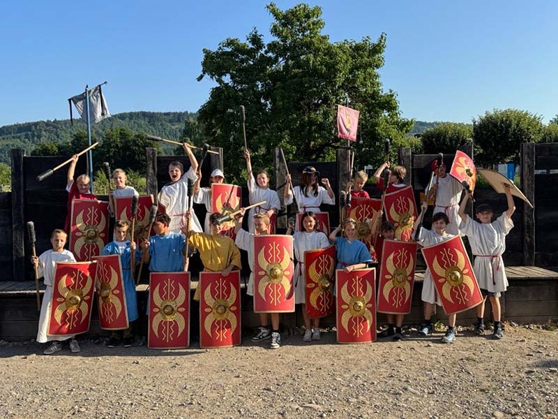 Nach Legionärsart marschierten wir im Anschluss durch die Stadt, bis wir im Lager angekommen waren. Hier durften wir kurz durchschnaufen, bevor wir in die Römerzeit eintreten konnten. Allerdings gab es dafür Bedingungen: