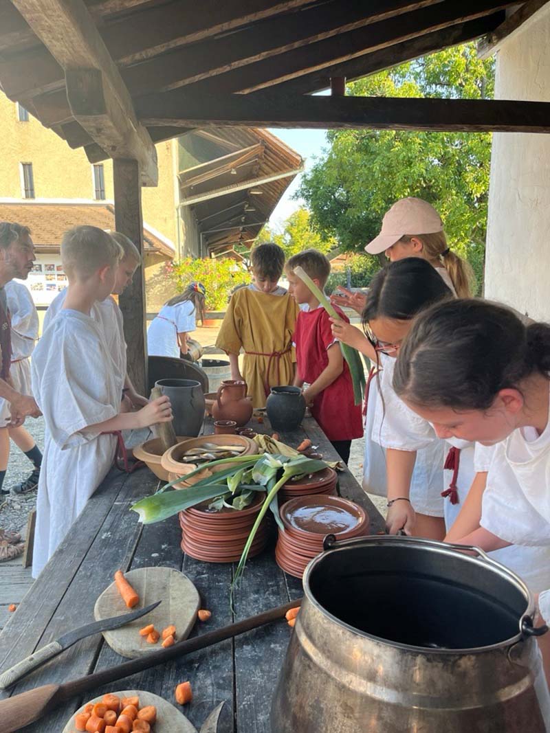 In Brugg angekommen, durften wir kurz unser Gepäck verstauen und los ging’s ins Museum mit Steingarten, Atrium und vielen originalen Ausstellungsstücken auf eine spannende Rallye rauf und runter und quer durchs Gebäude. Vieles konnten wir finden und sogar die Sonnenuhr hat funktioniert. Nur unsere neumodischen Uhren gingen falsch, denn sie waren auf Sommerzeit und nicht auf Normalzeit eingestellt.