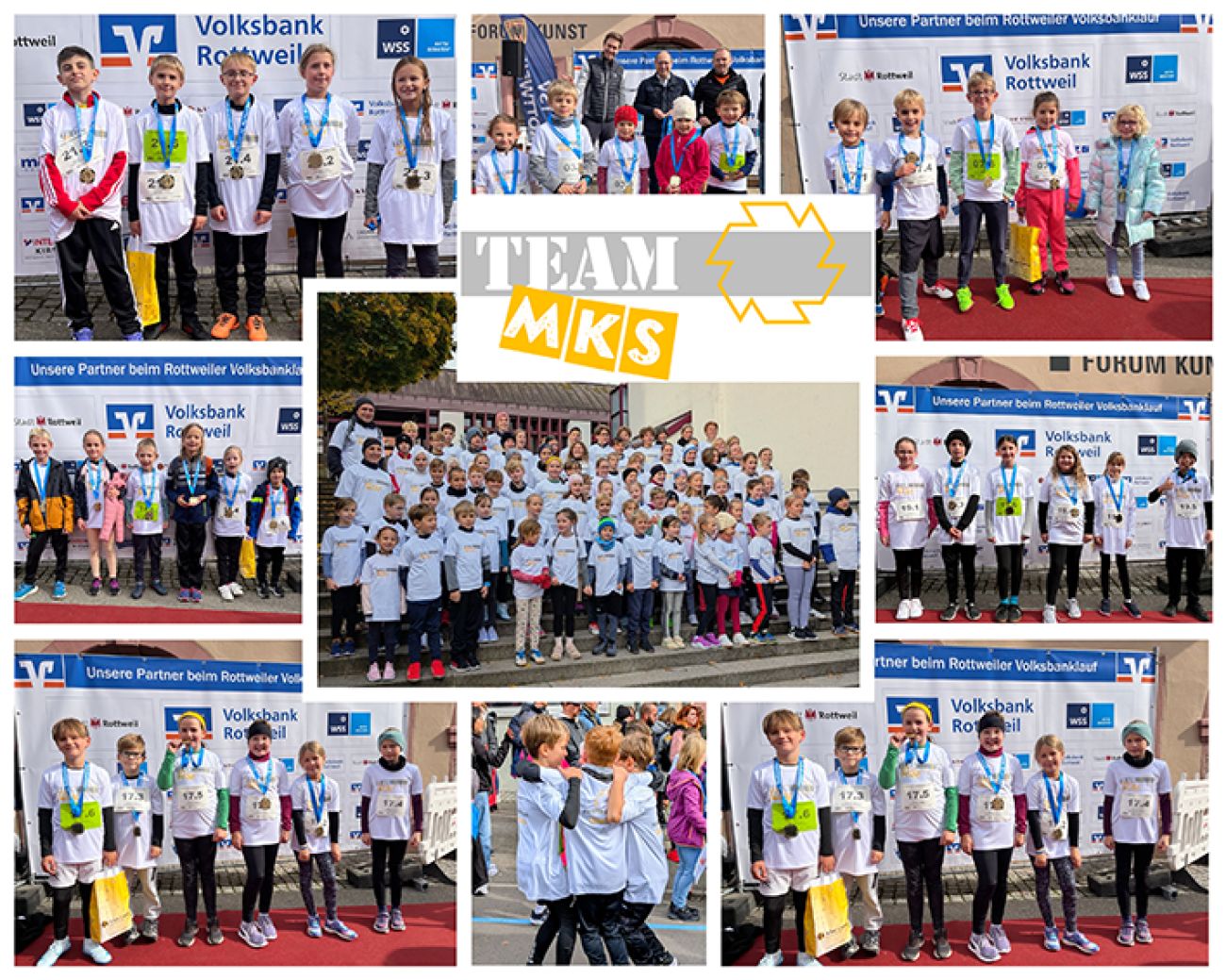 Um die 1000 Teilnehmer, so viele wie noch nie, machten mit beim diesjährigen Rottweiler Volksbanklauf, auch wir von der MKS waren erstmals mit 15 Staffeln vertreten und haben unsere Schule in nagelneuen Lauf T-shirts toll präsentiert.