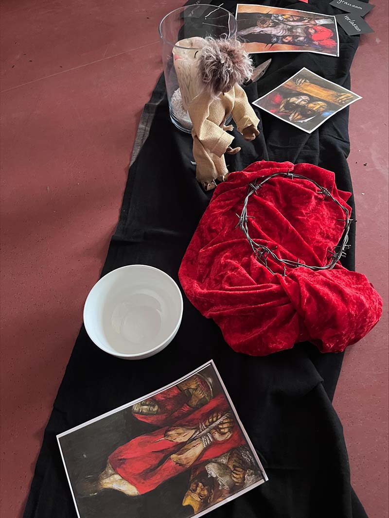 Einen besonderen Weg zum Osterfest ging die Klasse 4a in den letzten Wochen der Fastenzeit. In vier Morgenkreisen gestalteten sie einen wachsenden Osterweg zum Leben und Sterben Jesu und konnten dabei an vielen Stationen sein Leben und Leiden nachempfinden.